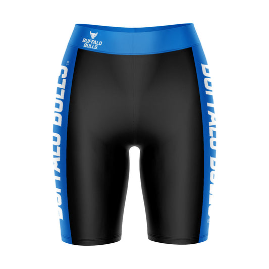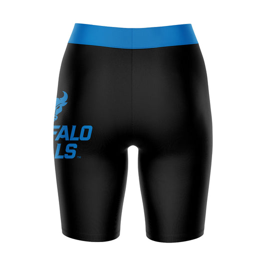 Buffalo Bulls Game Day Logo on Thigh and Waistband Black and Blue Womens Bike Shorts by Vive La Fete
