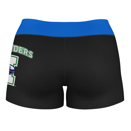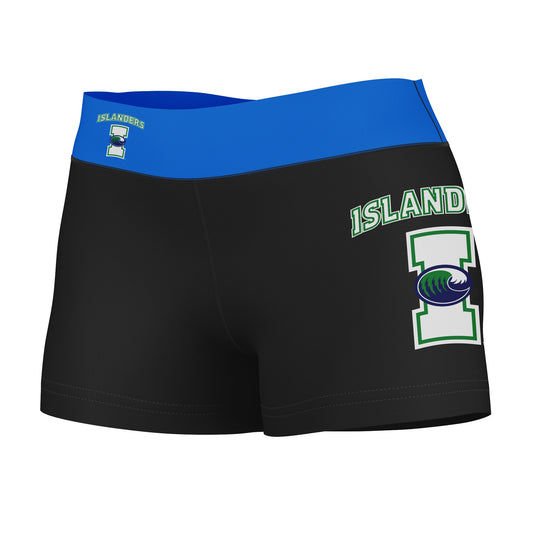Texas A&M Corpus Christi Islanders Logo on Thigh and Waistband Black & Blue Womens Yoga Booty Workout Shorts by Vive La Fete