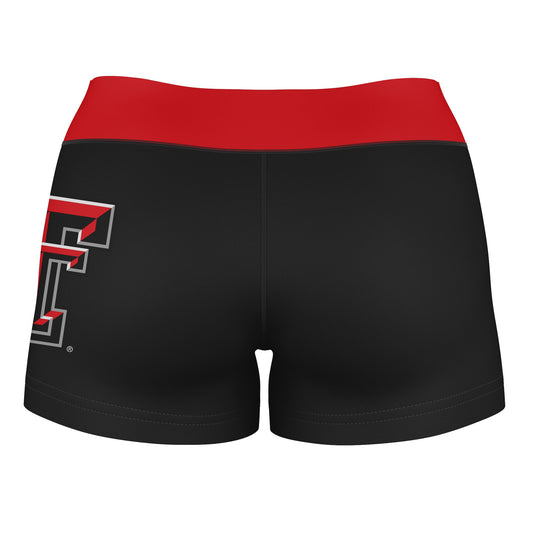 Texas Tech Red Raiders Logo on Thigh and Waistband Black & Red Womens Yoga Booty Workout Shorts by Vive La Fete