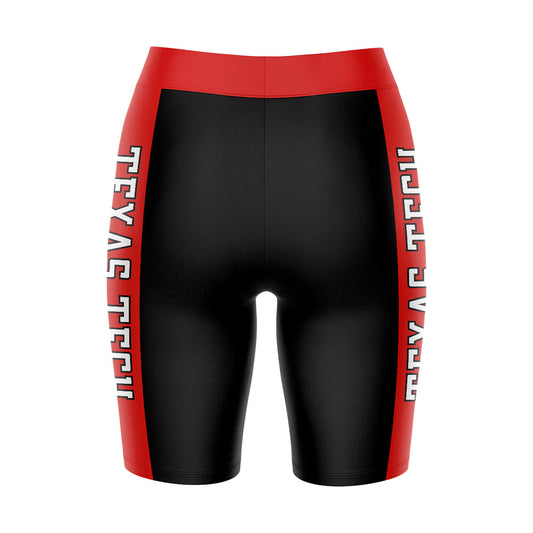 Texas Tech Red Raiders Game Day Logo on Thigh and Waistband Black and Red Womens Bike Shorts by Vive La Fete