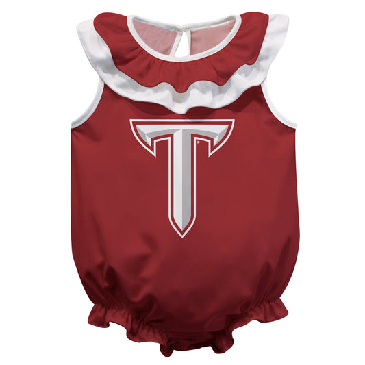 Troy Trojans Swirls Maroon Sleeveless Ruffle One Piece Jumpsuit Logo Bodysuit by Vive La Fete