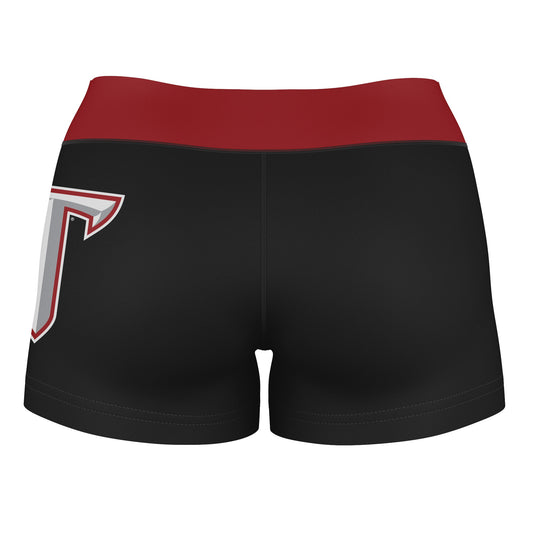 Troy Trojans Game Day Logo on Thigh and Waistband Black & Maroon Womens Yoga Booty Workout Shorts by Vive La Fete