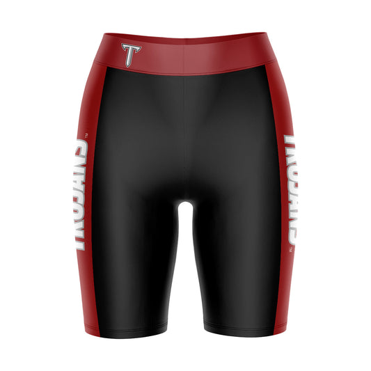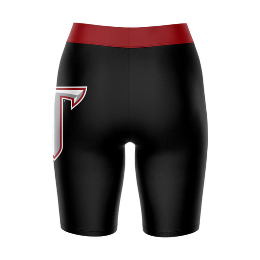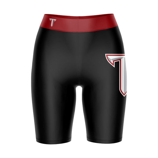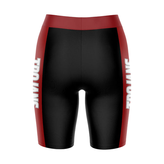 Troy Trojans Game Day Logo on Thigh and Waistband Black and Maroon Womens Bike Shorts by Vive La Fete