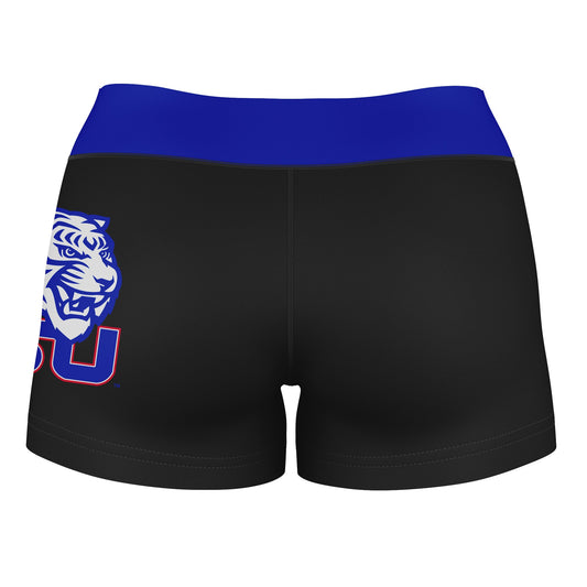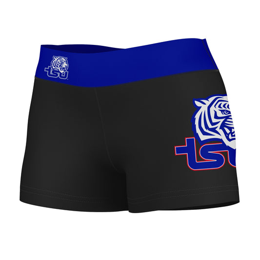 Tennessee State Tigers Logo on Thigh and Waistband Black & Blue Womens Yoga Booty Workout Shorts by Vive La Fete