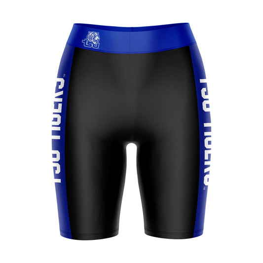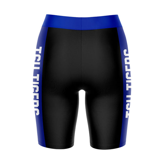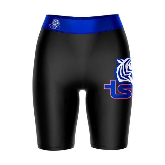 Tennessee State Tigers Game Day Logo on Thigh and Waistband Black and Blue Womens Bike Shorts by Vive La Fete