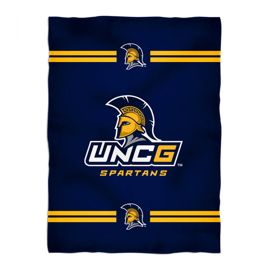 UNC Greensboro Spartans UNCG Game Day Soft Premium Navy Throw Blanket 40 x 58 Logo and Stripes by Vive La Fete
