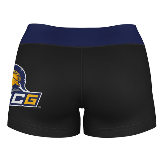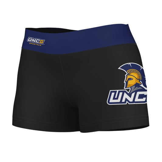 UNCG Spartans Game Day Logo on Thigh and Waistband Black & Navy Womens Yoga Booty Workout Shorts by Vive La Fete