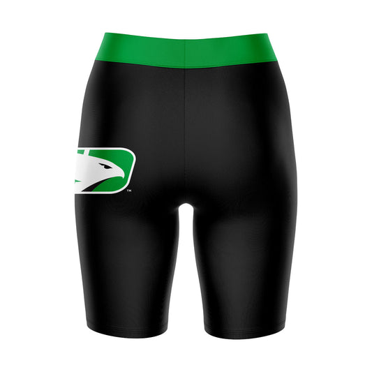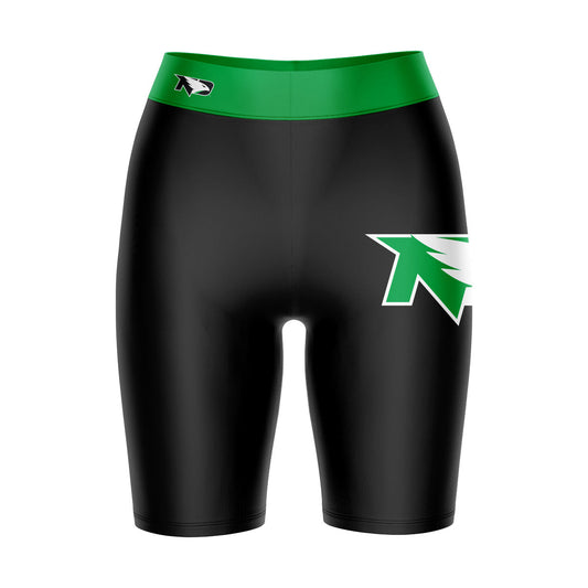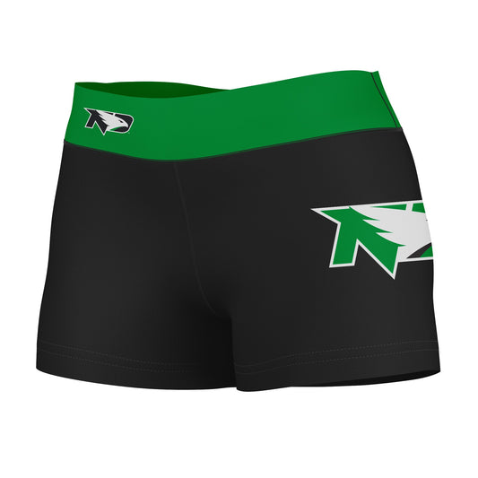 UND Fighting Hawks Logo on Thigh and Waistband Black & Green Womens Yoga Booty Workout Shorts by Vive La Fete