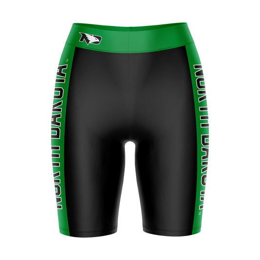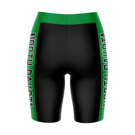 North Dakota Fighting Hawks Game Day Logo on Waistband and Green Stripes Black Womens Bike Shorts by Vive La Fete