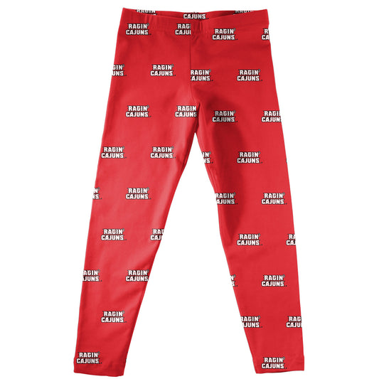 Louisiana At Lafayette Repeat Logo Black Girls Leggings