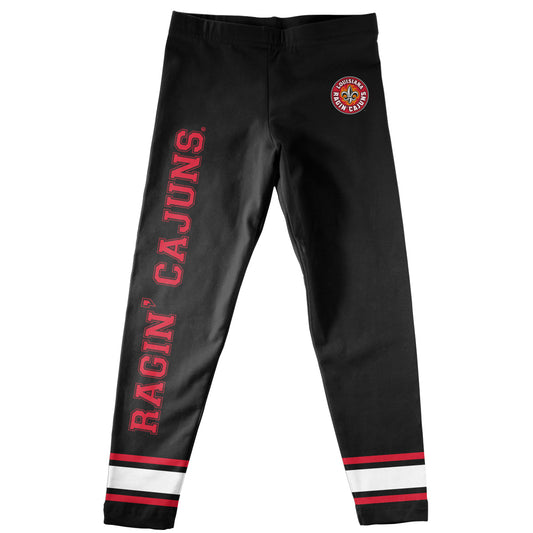 Louisiana At Lafayette Verbiage And Logo Black Stripes Girls Leggings