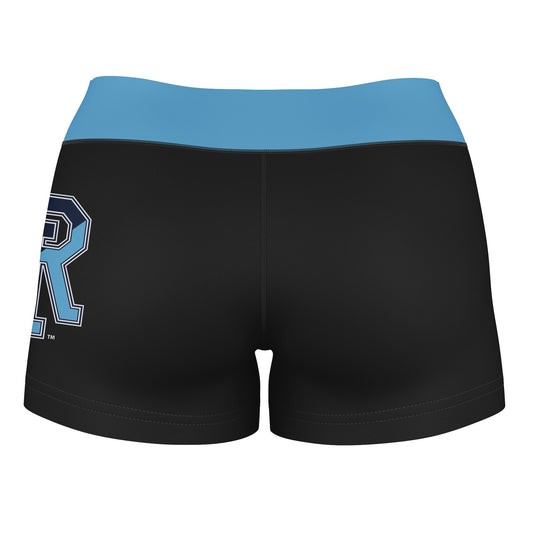 Rhode Island Rams Logo on Thigh and Waistband Black & Light Blue Womens Yoga Booty Workout Shorts by Vive La Fete