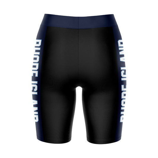 Rhode Island Rams Game Day Logo on Waistband and Navy Stripes Black Womens Bike Shorts by Vive La Fete