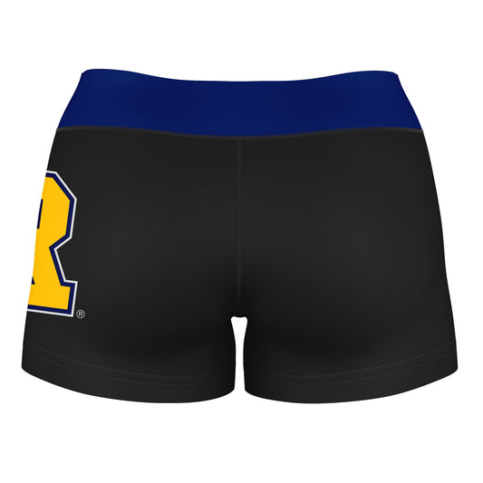 Rochester Yellowjackets Logo on Thigh and Waistband Black & Blue Womens Yoga Booty Workout Shorts by Vive La Fete