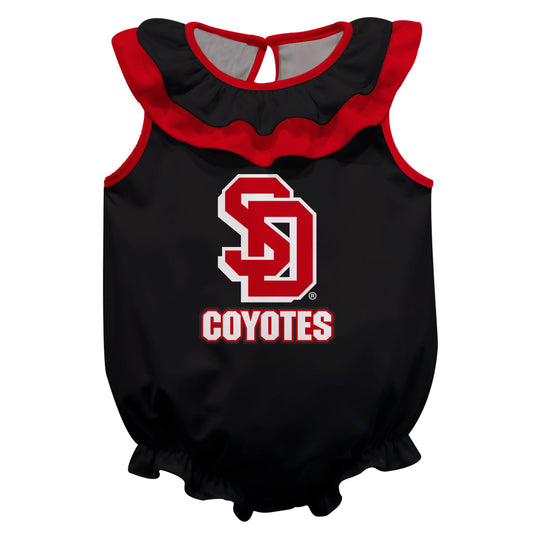 South Dakota Coyotes Black Sleeveless Ruffle One Piece Jumpsuit Logo Bodysuit by Vive La Fete