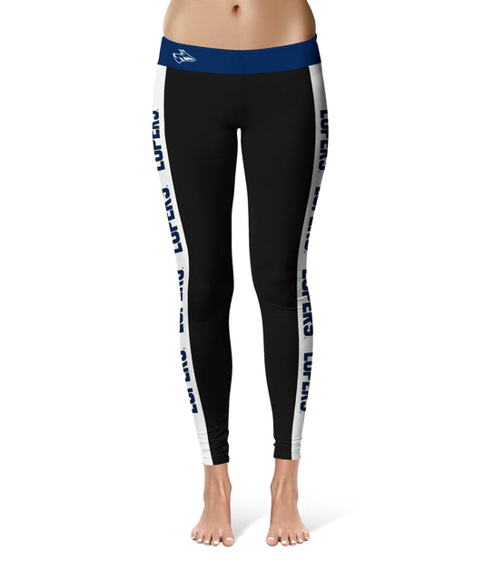Nebraska-Kearney Lopers UNK Game Day Blue Stripes Black Yoga Leggings for Women by Vive La Fete