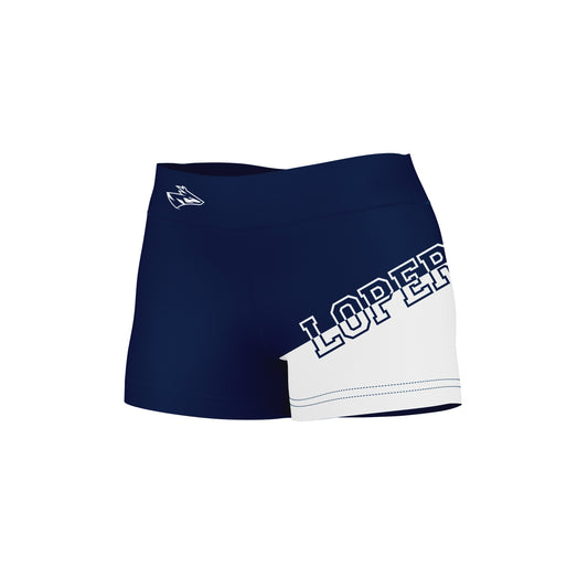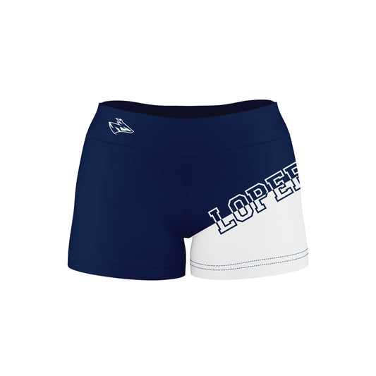 Nebraska-Kearney Lopers UNK Game Day Collegiate Leg Color Block Navy White Optimum Womens Yoga Shorts by Vive La Fete