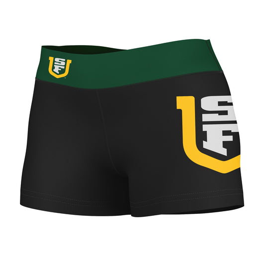 San Francisco Dons USF Logo on Thigh and Waistband Black & Green Womens Yoga Booty Workout Shorts by Vive La Fete