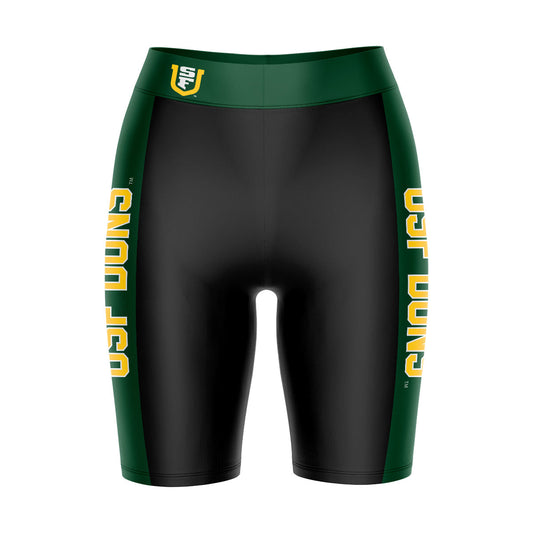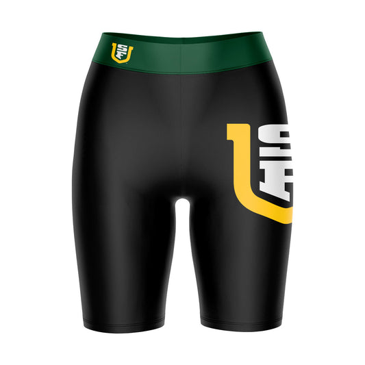 San Francisco Dons USF Game Day Logo on Thigh and Waistband Black and Green Womens Bike Shorts by Vive La Fete