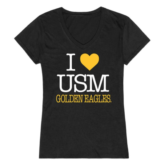 I Love USM University of Southern Mississippi Golden Eagles Womens T-Shirt