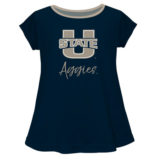 Utah State Aggies USU Girls Game Day Short Sleeve Navy Laurie Top by Vive La Fete