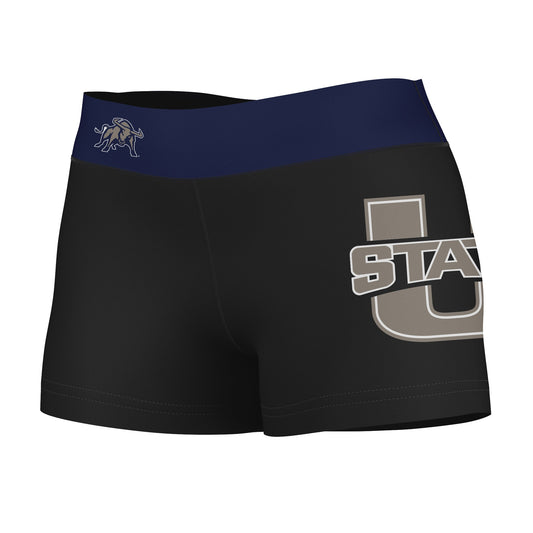 Utah State Aggies Game Day Logo on Thigh and Waistband Black & Navy Booty Workout Shorts by Vive La Fete