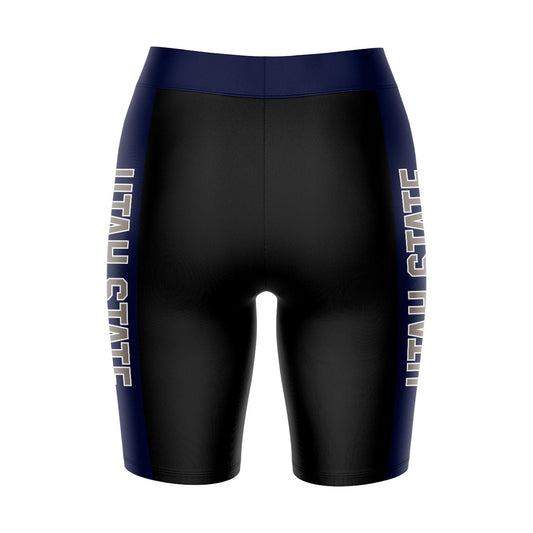 Utah State Aggies Game Day Logo on Thigh and Waistband Black and Navy Womens Bike Shorts by Vive La Fete