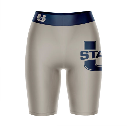 Utah State Aggies Game Day Logo on Thigh and Waistband Gray and Blue Womens Bike Shorts by Vive La Fete