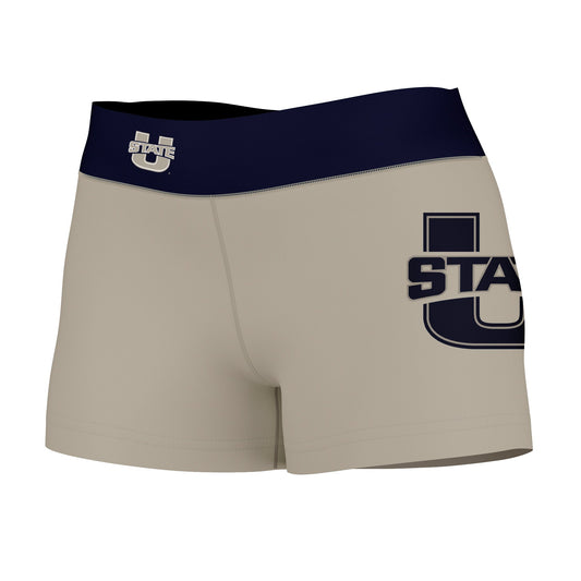 Utah State Aggies Logo on Thigh & Waistband Gray Blue Womens Yoga Booty Workout Shorts by Vive La Fete