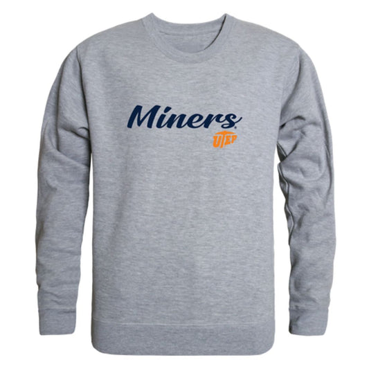UTEP University of Texas at El Paso Miners Script Crewneck Pullover Sweatshirt Sweater Heather Charcoal