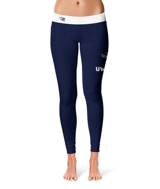 UW Wisconsin Stout Blue Devils Game Day Ankle Color Block Navy White Yoga Leggings for Women by Vive La Fete
