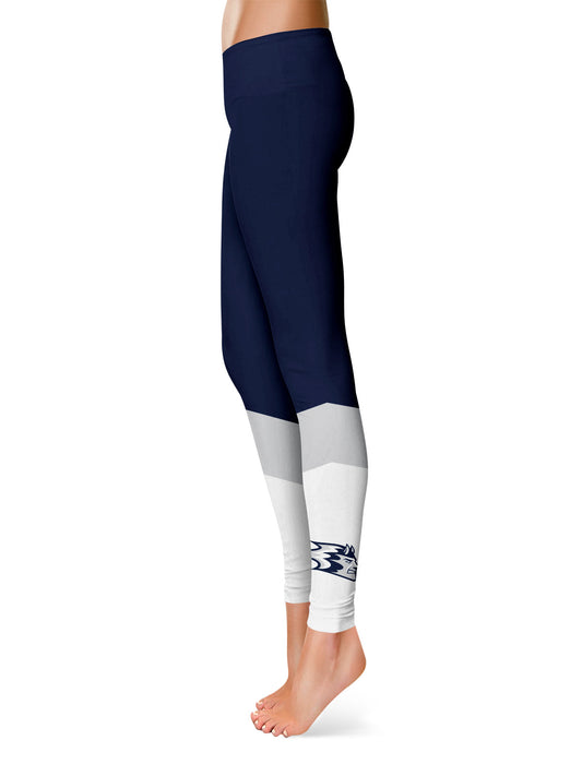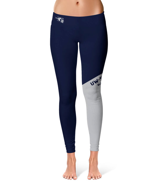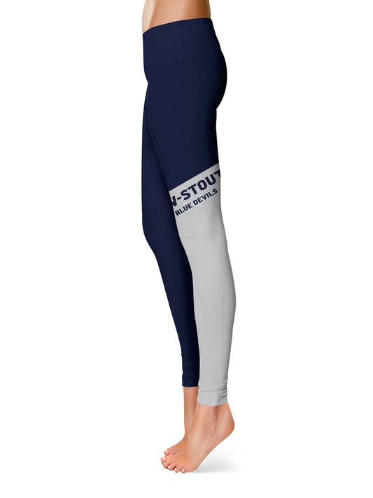 UW Wisconsing Stout Blue Devils Game Day Leg Color Block Navy Gray Yoga Leggings for Women by Vive La Fete