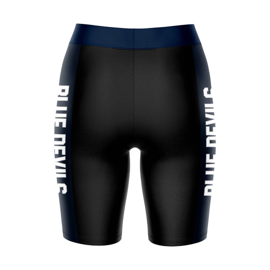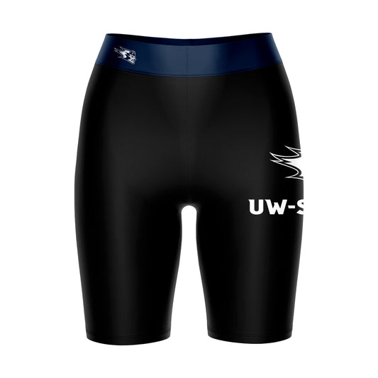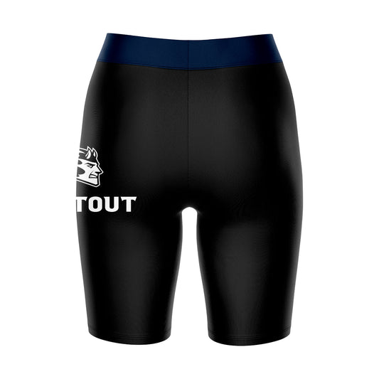 UW Wisconsin Stout Blue Devils Game Day Logo on Thigh and Waistband Black & Navy Womens Bike Shorts by Vive La Fete