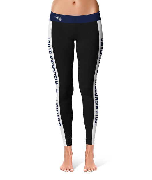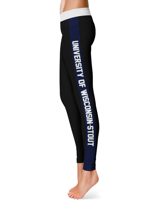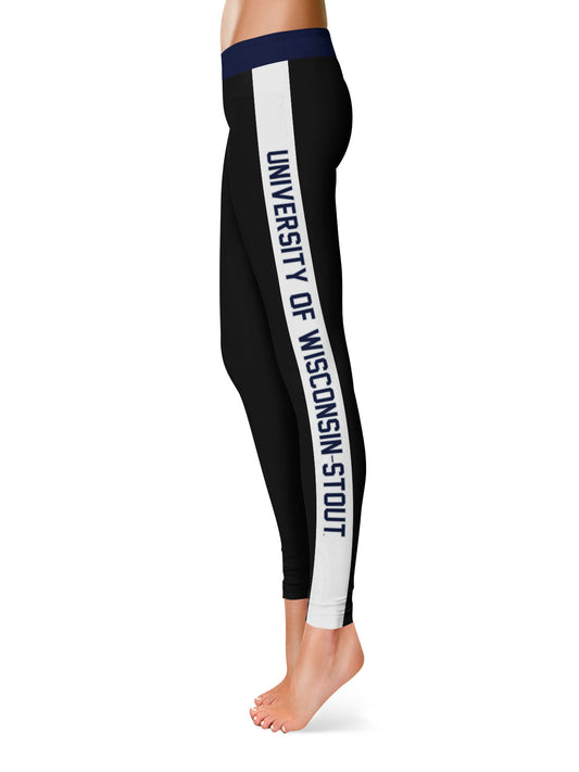 UW Wisconsin Stout Blue Devils Game Day White Stripes Black Yoga Leggings for Women by Vive La Fete