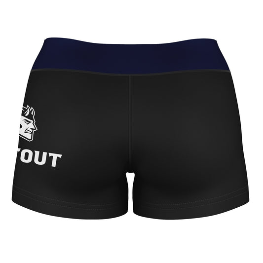 UW Wisconsin Stout Blue Devils Logo on Thigh & Waistband Black & Blue Womens Yoga Booty Workout Shorts by Vive La Fete
