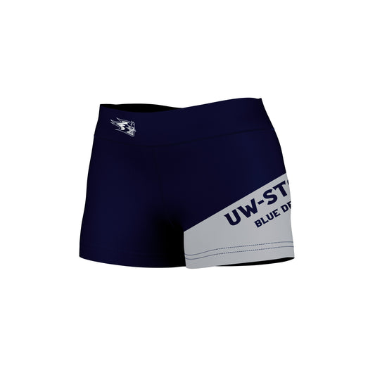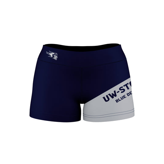 Wisconsin Stout Blue Devils UW Game Day Collegiate Leg Color Block Navy Gray Optimum Womens Yoga Shorts by Vive La Fete