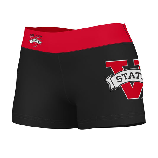 Valdosta Blazers Logo on Thigh and Waistband Black & Red Womens Yoga Booty Workout Shorts by Vive La Fete