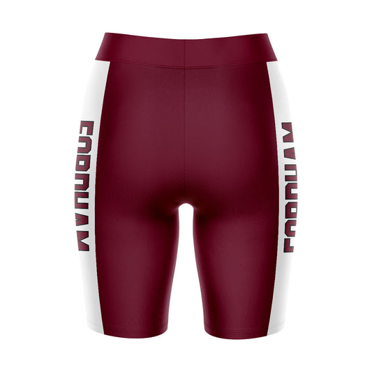 Fordham Rams Game Day Logo on Waistband and White Stripes Maroon Womens Bike Shorts by Vive La Fete