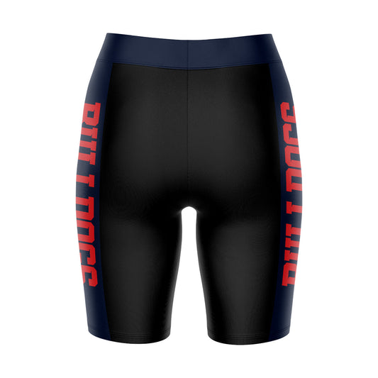 Drake Bulldogs Game Day Logo on Waistband and Blue Stripes Black Womens Bike Shorts by Vive La Fete