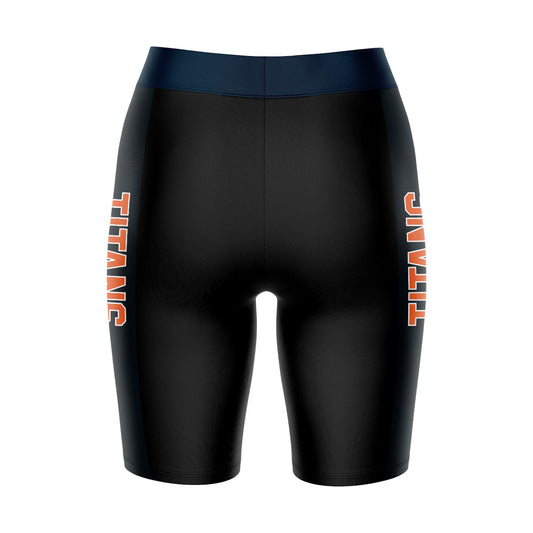 Cal State Fullerton Titans CSUF Game Day Logo on Waistband & Navy Stripes Black Womens Bike Shorts by Vive La Fete