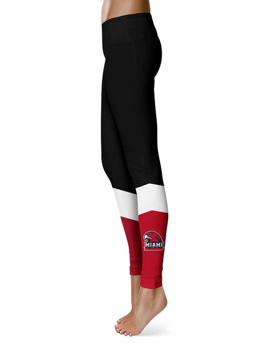 Miami Ohio RedHawks Game Day Ankle Color Block Black Red Yoga Leggings for Women by Vive La Fete