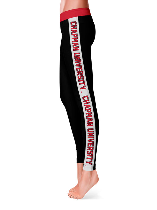 Chapman University Panthers Game Day Red Stripes Black Yoga Leggings for Women by Vive La Fete