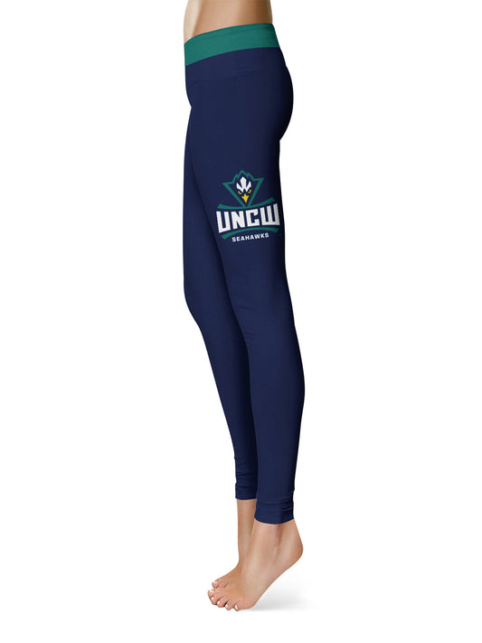 UNC Wilmington Seahawks UNCW Game Day Logo on Thigh Blue Yoga Leggings for Women by Vive La Fete