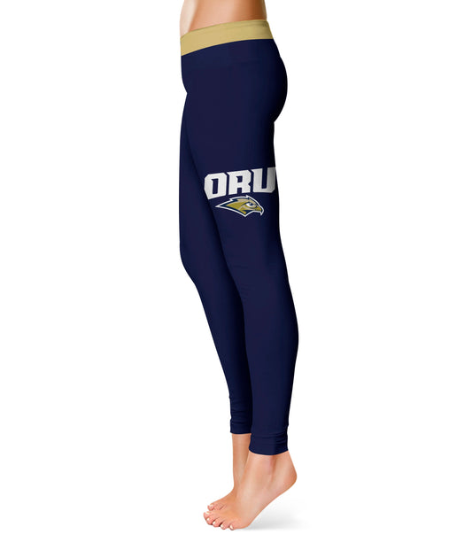 Oral Roberts Golden Eagles Game Day Logo on Thigh Navy Yoga Leggings for Women by Vive La Fete