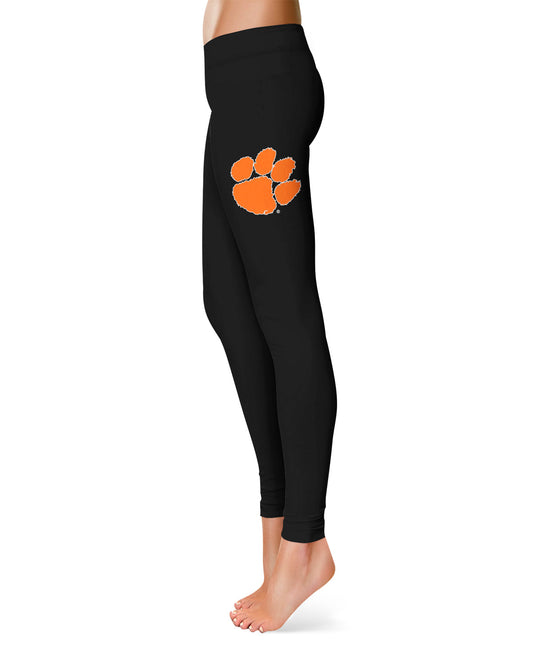 Clemson Tigers Game Day Large Logo on Thigh Black Yoga Leggings for Women by Vive La Fete