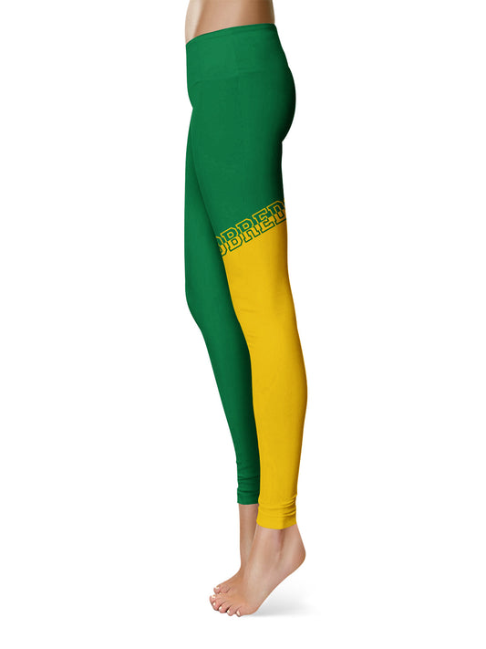 Wayne State Warriors Game Day Leg Color Block Green Gold Yoga Leggings for Women by Vive La Fete