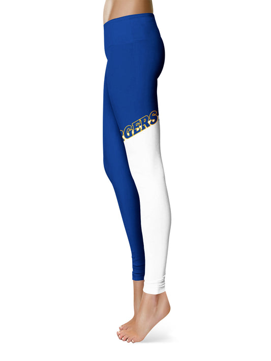 EIU Eastern Illinois University Game Day Leg Color Block Blue White Yoga Leggings for Women by Vive La Fete
