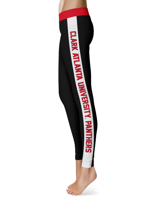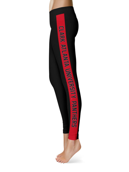 Clark Atlanta Panthers Game Day Red Stripes Black Yoga Leggings for Women by Vive La Fete