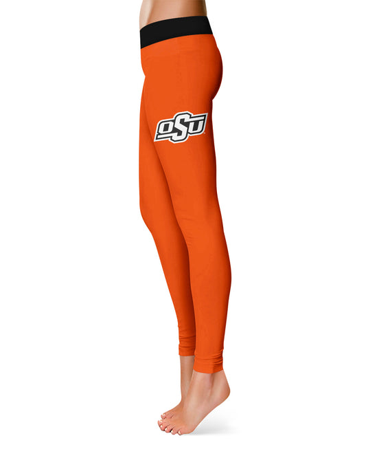 Oklahoma State Cowboys Game Day Logo on Thigh Orange Yoga Leggings for Women by Vive La Fete