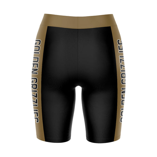 Oakland Golden Grizzlies Game Day Logo on Waistband and Gold Stripes Black Womens Bike Shorts by Vive La Fete